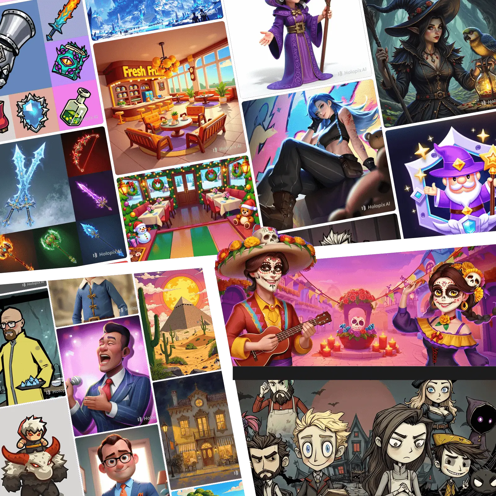 "做独立游戏最怕的,就是美术素材东拼西凑,不仅风格不搭,还可能踩版权坑。Holopix 解决了这一切,让开发者能把时间花在真正的游戏创作上。"